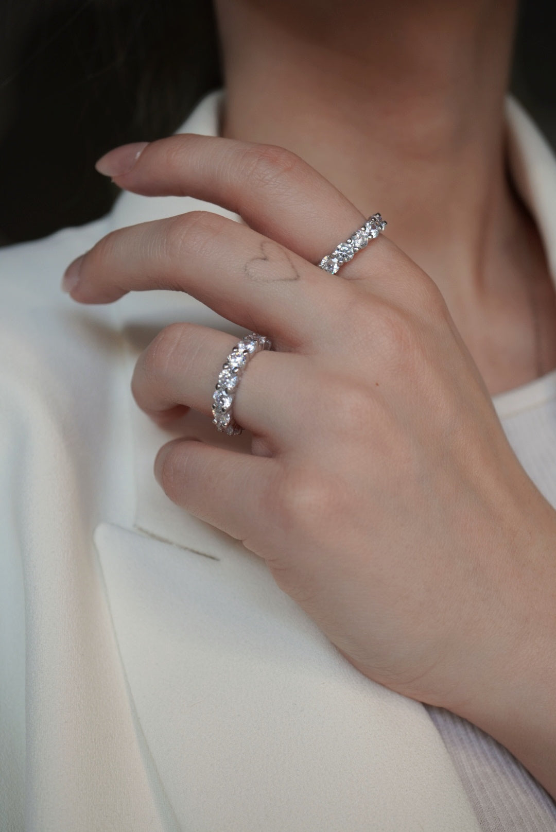 Design: Full eternity pavé band featuring a continuous line of precisely aligned stones